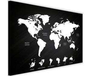 Schilderij , Wereld in Zwart wit , Wereldkaart ,2 maten - Tesca-art